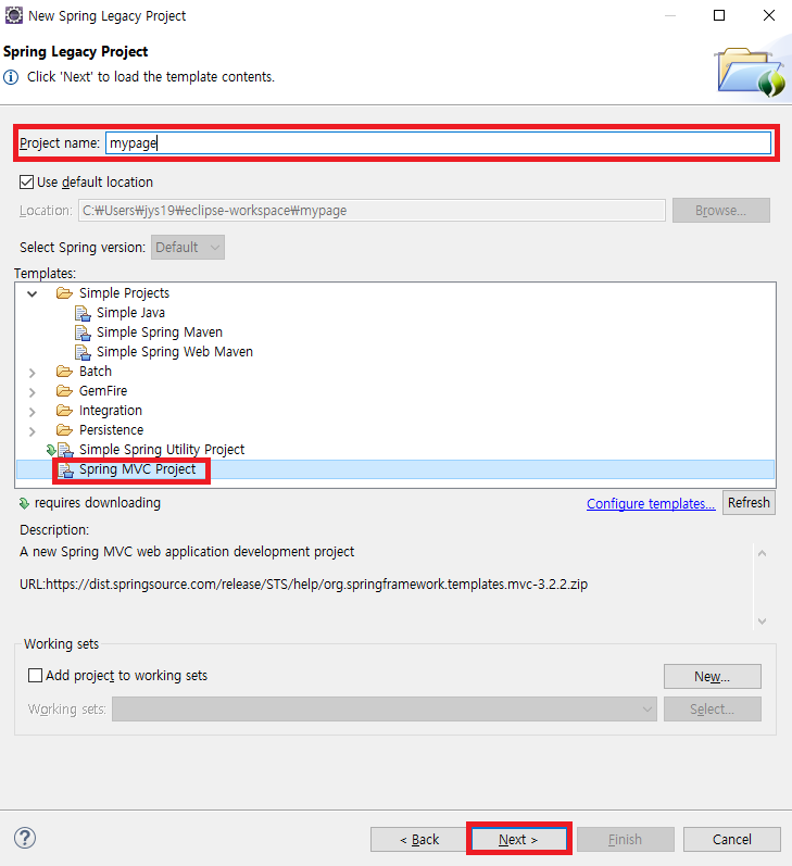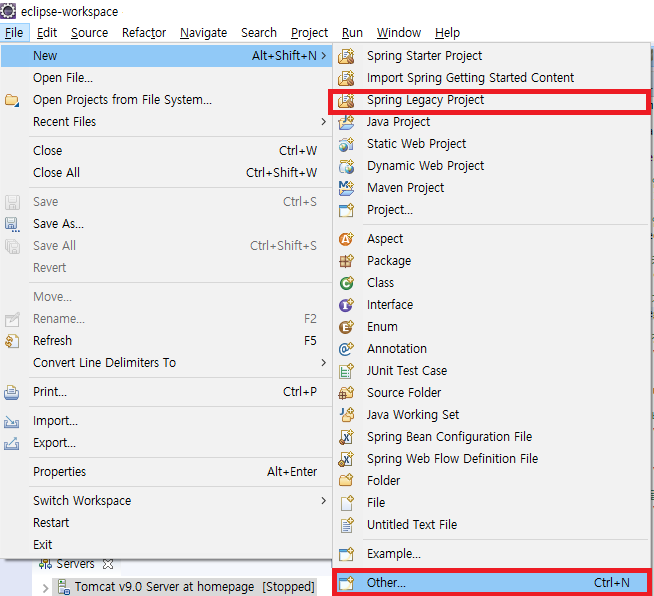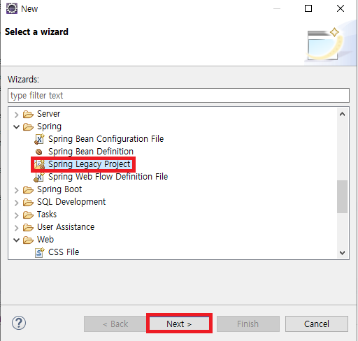 게시판 만들기 프로젝트를 구현하기 위해 이클립스에서 Spring 프로젝트를 아래의 순서에 따라 생성해줍니다.