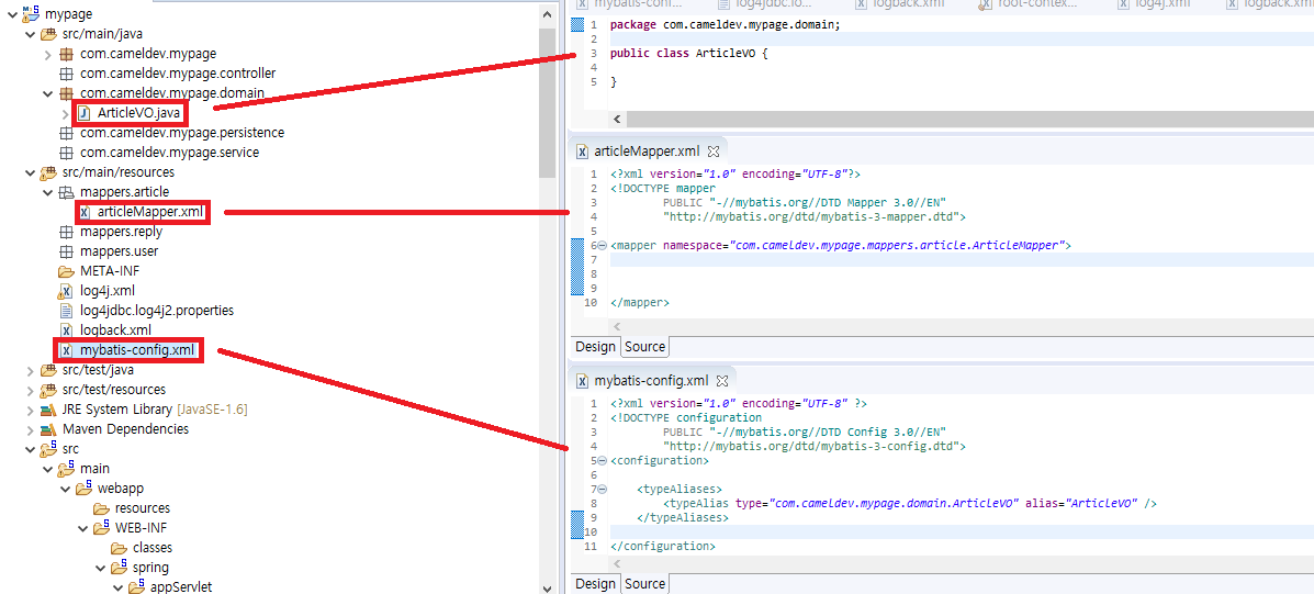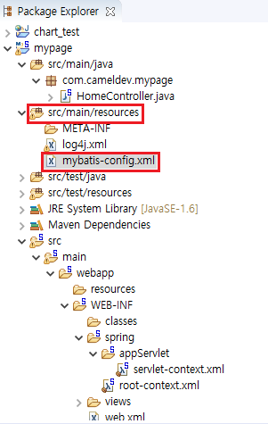 그림 2-1 <?xml version="1.0" encoding="UTF-8" ?> <!DOCTYPE configuration PUBLIC "-//mybatis.org//DTD Config 3.0//EN" "http://mybatis.org/dtd/mybatis-3-config.dtd"> <configuration> <typeAliases> <typeAlias type="com.cameldev.mypage" /> </typeAliases> </configuration>2-5. log4jdbc.log4j2.properties, logback.xml 파일 생성