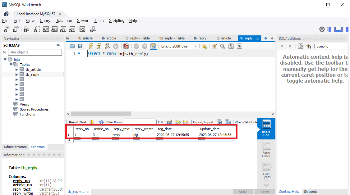 물론 DB에도 정상적으로 데이터가 입력된 것도 확인할 수 있습니다.
