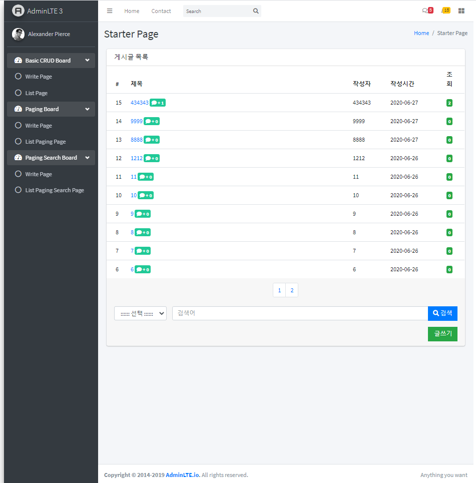<td> <a href="${path}/article/paging/search/read${pageMaker.makeSearch(pageMaker.criteria.page)}&article_no=${article.article_no}"> ${article.title} </a> <span class="badge bg-teal"><i class="fas fa-comment"></i> + ${article.replyCnt}</span> </td>7. 게시글 목록 출력 페이지에서의 댓글 갯수 출력 확인
